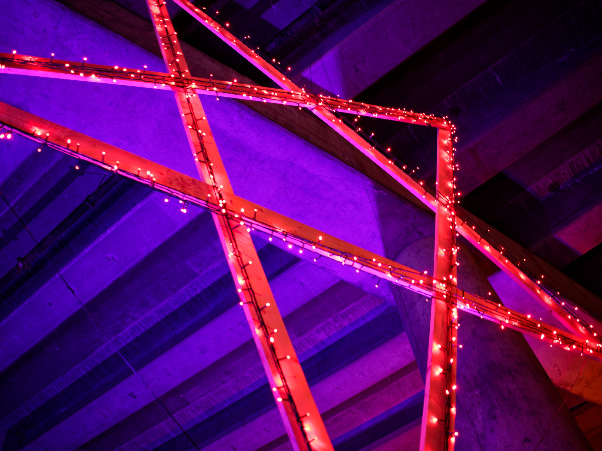 It’s welded steel, stage trusses and messy sharpie-drawn flyers.