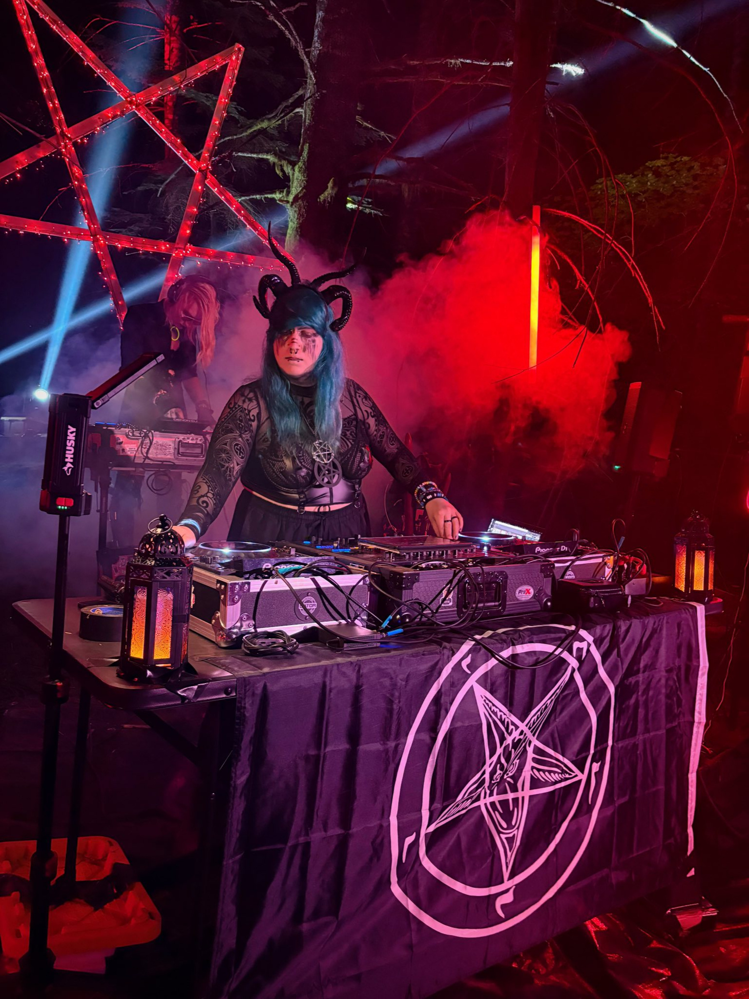 Hello, I’m Autumn- artist, rave instigator, literal demoness, tech witch, Disc Jockey, and chaos priestess behind the veil. But before all that, I was a queer kid trapped in the machinery of suburban normalcy.I grew up in an isolated world in one of the may red areas of this stolen land that told me to smile, to blend in, to pray the strange out of myself and suffer silently. Church pews on Sunday, fluorescent classrooms on Monday- rituals of obedience disguised as love. I learned early how easily people worship a god they invented rather than face the living pulse of sacred disorder that keeps this mortal coil alive.I found salvation in the forest of the Pacific Northwest. In distorted music, in the shriek of feedback, in goth spaces painted in red lights. The DIY scene became my church, the warehouse my communion. Punk zines, industrial noise, occult symbolism, and trans joy all fused into one revelation: creation is my divine right and chaos is holy when it’s honest.If you want to dive deeper into where I came from and what built me, read my zine. It’s an extremely personal spellbook of scars and chronicles of plurality. I explainin my identity and becoming- actualizing my etherial form as a demonic hellhound.